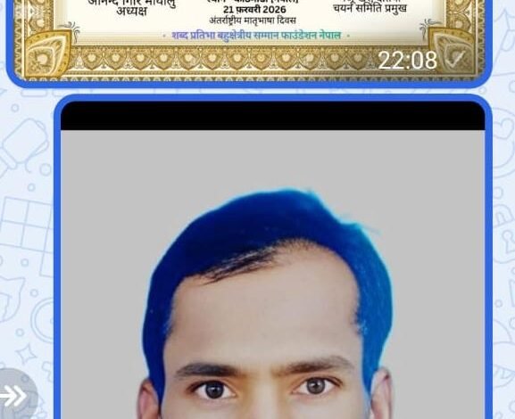 अंतर्राष्ट्रीय मातृभाषा दिवस पर नेपाल की संस्था द्वारा कवि एवं गीतकार मुन्ना राम मेघवाल मातृभाषा रत्न सम्मान से सम्मानित।।