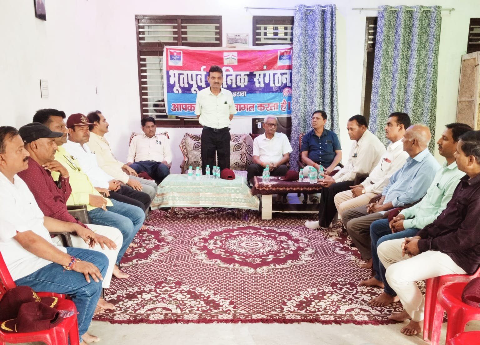 इटावा – आज 10 अगस्त को पूर्व सैनिकों की मासिक मीटिंग सूबेदार राजबीर सिंह चौहान के आवास धनंजय पुरम पर संपन्न हुई उनका जिला अध्यक्ष प्रताप सिंह भदौरिया तथा कैप्टन सुरेश सिंह साहब और सभी पदाधिकारियों ने फूलमाला पहना कर स्वागत किया। जिला अध्यक्ष प्रताप सिंह भदौरिया ने सभी सैनिकों को अगस्त महीने में होने वाले कार्यक्रमों को अवगत कराया जिसमें 11 अगस्त को तिरंगा रैली और 15 अगस्त को स्वतंत्रता दिवस, तथा ECHS, CEA के नए नियमों पर बिस्तार से चर्चा की, पूर्व सैनिकों की समस्याओं को जिलाधिकारी महोदय की मीटिंग में निवारण करने का भरोसा दिलाया, सभी पदाधिकारियों और सदस्य भाइयों ने अपना अपना संक्षिप्त परिचय दिया अंत में भगवानदास शर्मा ‘प्रशांत’ ने सरहद पर तैनात जवानों के लिए एक बेहतरीन स्वरचित गीत सुनाया। आज की मीटिंग में जिला अध्यक्ष प्रताप सिंह भदौरिया, कैप्टन सुरेश सिंह साहब, कैप्टन अनिल अवस्थी साहब, कैप्टन जितेंद्र सिंह साहब, महामंत्री राकेश यादव साहब, कैप्टन शैलेन्द्र सिंह साहब, राम शंकर सिंह, राजबीर चौहान साहब, उपाध्यक्ष उदय प्रताप सिंह चौहान, मीडिया प्रमुख भगवानदास शर्मा ‘प्रशांत’ कोषाध्यक्ष नारायण सिंह, बृजेश सिंह, राजेश सिंह, शौकीन सिंह, चंद्र प्रकाश सिंह, राम सिंह तथा बहुत से पूर्व सैनिक उपस्थित रहे।