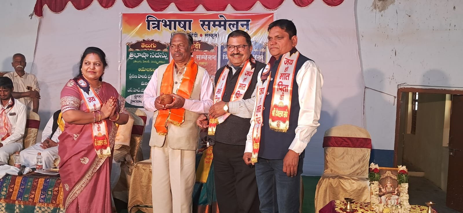 समारोह के अतिथि डॉ रावी नूतला शशिधर, तेलगु वक्ता आचार्य कसी रेड्डी वेंकट रेड्डी जी पूर्व अध्यक्ष तेलगु विभाग उस्मानिया विश्वविद्यालय, संस्कृत वक्ता चिलकर्मरी लक्ष्मीनाथ आचार्य जी विरमित उपन्यासक अध्यक्ष संस्कृत भारती ट्रस्ट तेलंगाना, हिंदी वक्ता गजेन्द्र पाठक जी सीनियर प्रोफेसर एवं अध्यक्ष हिन्दी विभाग हैदराबाद, कवि संगम त्रिपाठी संस्थापक प्रेरणा हिंदी प्रचारिणी सभा, डॉ गुंडाल विजय कुमार संस्थापक एस एच एम वी फाउंडेशन हैदराबाद, रामवल्लभ इंदौरी जी रहे।