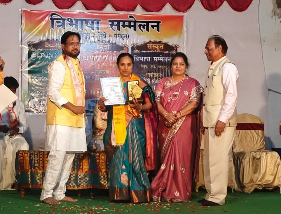 दुर्गेश नंदिनी हैदराबाद त्रिभाषा सम्मेलन में सम्मानित हुई