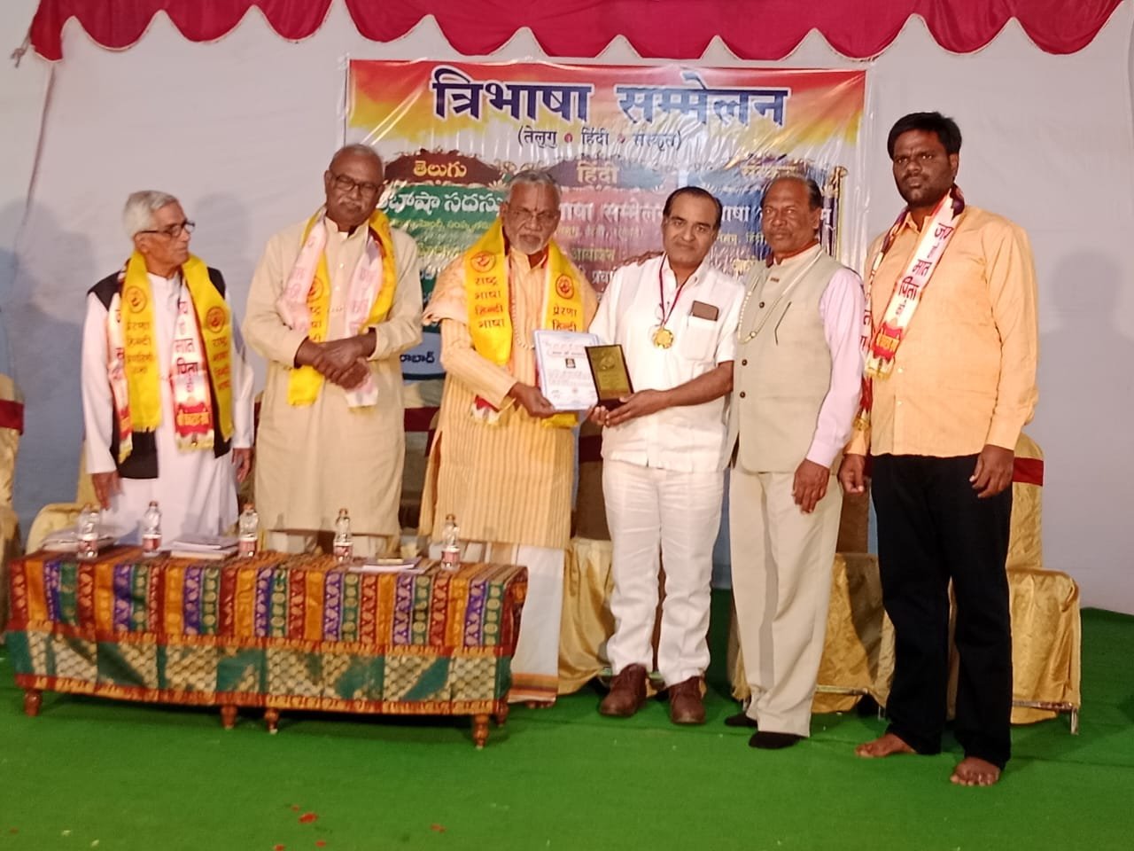 त्रिभाषा सम्मेलन हैदराबाद में अजय पांडेय हैदराबाद को सम्मानित किया गया। हिंदी प्रचार प्रसार में अजय पांडेय हैदराबाद सक्रिय होकर कार्य कर रहे है।