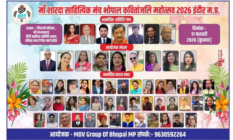 माँ शारदा साहित्यिक मंच राजगढ़(भोपाल) के तत्वाधान में माँ अहिल्या देवी की नगरी ओर भारत वर्ष का सबसे स्वच्छ शहर इंदौर में होने जा रहा भव्य कवितांजलि महोत्सव।