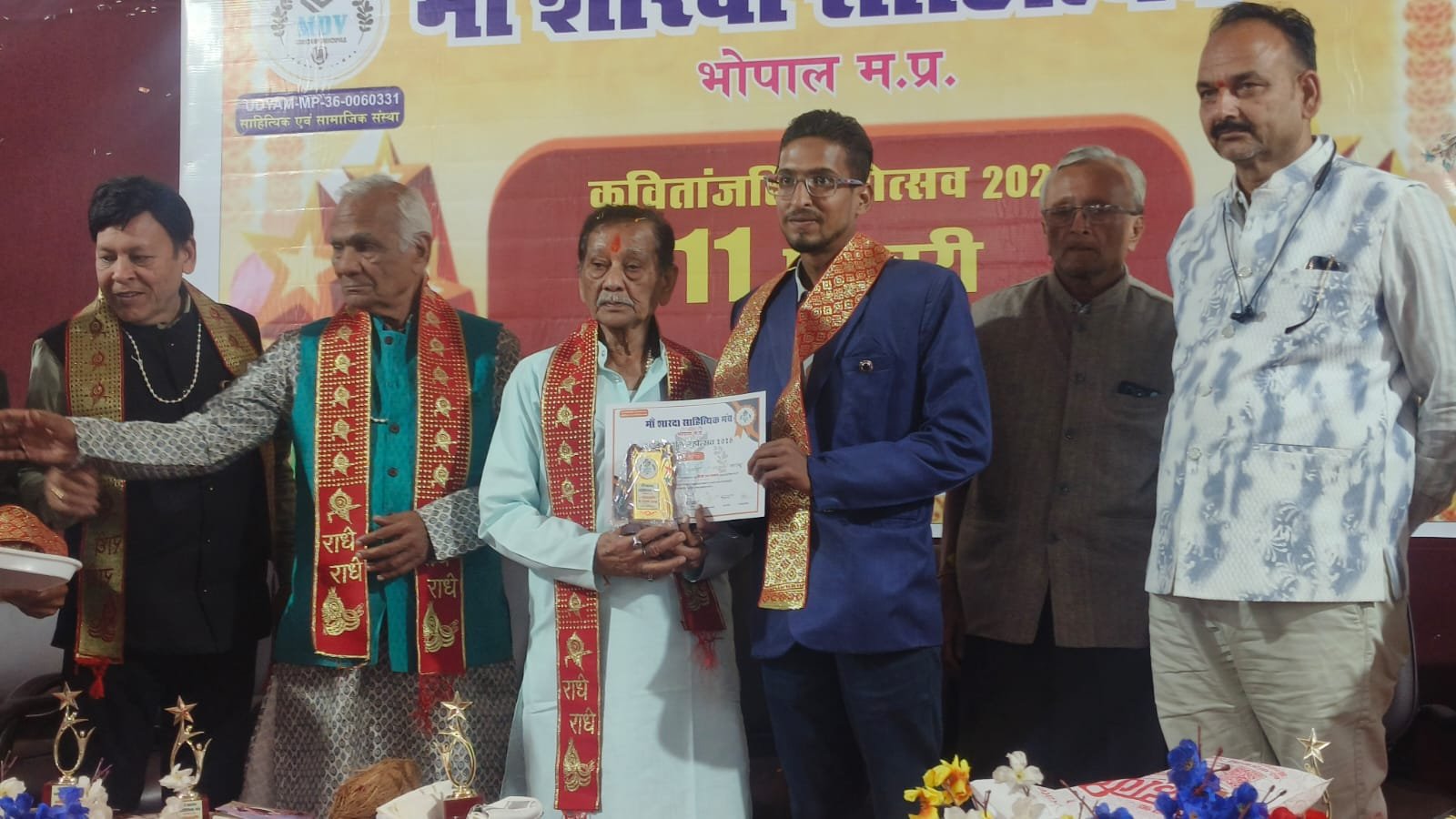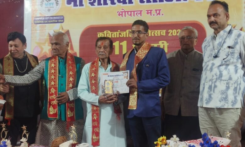 साहित्य के क्षेत्र में हमेशा से अग्रणी रहा इंदौर मे आयोजित माँ शारदा साहित्यिक मंच द्वारा दिनांक 11 फरवरी 2026 दिन बुधवार को विराट कवि सम्मेलन एवं कवितांजलि महोत्सव का आयोजन शिवाजी परिसर श्रीमध्य भारत हिंदी साहित्य समिति भवन, रविन्द्र नाथ टैगोर मार्ग इंदौर में आयोजित किया गया। इस कार्यक्रम में सावनेर नागपुर महाराष्ट्र के अंतर्राष्ट्रीय हास्य कवि अमन रंगेला ‘अमन’ सनातनी ने अपनी हास्य व्यंग्य की कविताओं से सबको मंत्र मुक्त कर दिया और सभी को खूब हँसया एवं गुदगुदाया ।
