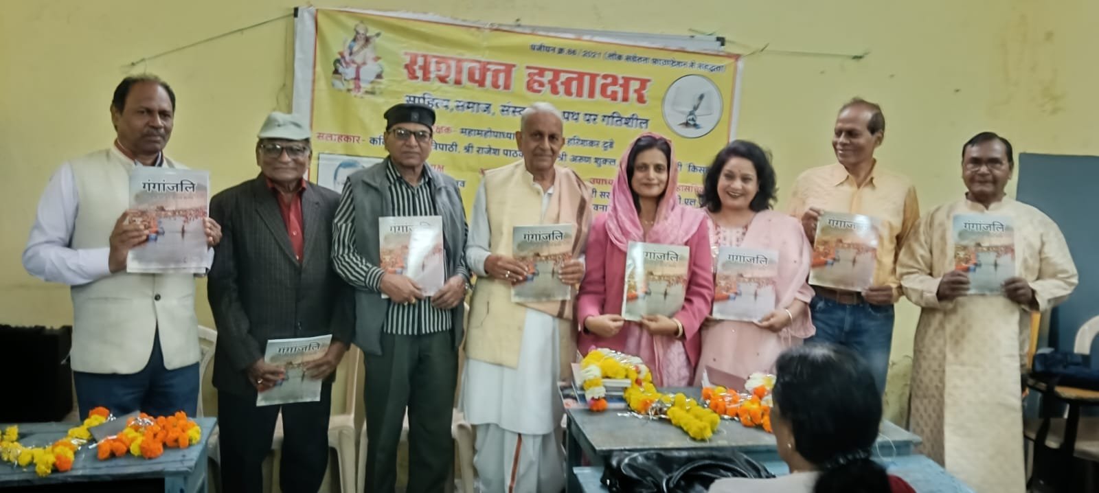 जबलपुर - संस्कारधानी जबलपुर की क्रियाशील साहित्य, समाज व संस्कृति को समर्पित संस्था सशक्त हस्ताक्षर के मंच पर गंगांजलि साझा काव्य संग्रह का लोकार्पण किया गया। नूतन मराठी स्कूल गोलबाजार जबलपुर के प्रांगण में दिनांक 14 फरवरी 2026 को आयोजित काव्य गोष्ठी में मुख्य अतिथि माधुरी मिश्रा निदेशक गूंज एवं कार्यक्रम अध्यक्ष महामहोपाध्याय हरिशंकर दुबे रहे। सारस्वत अतिथि राजेश पाठक प्रवीण, मंगलभाव कवि संगम त्रिपाठी के सानिध्य में भव्य आयोजन हुआ। संचालन सशक्त हस्ताक्षर संस्था के संस्थापक गणेश श्रीवास्तव प्यासा जबलपुरी ने किया।