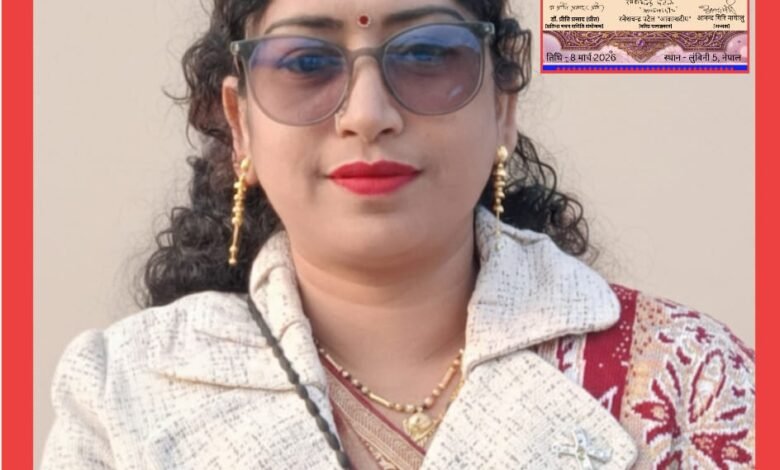 लुंबिनी, 8 मार्च ! मध्यप्रदेश की कवयित्री तथा शिक्षिका रीना पटले को नेपाल में सम्मानित किया गया है।
