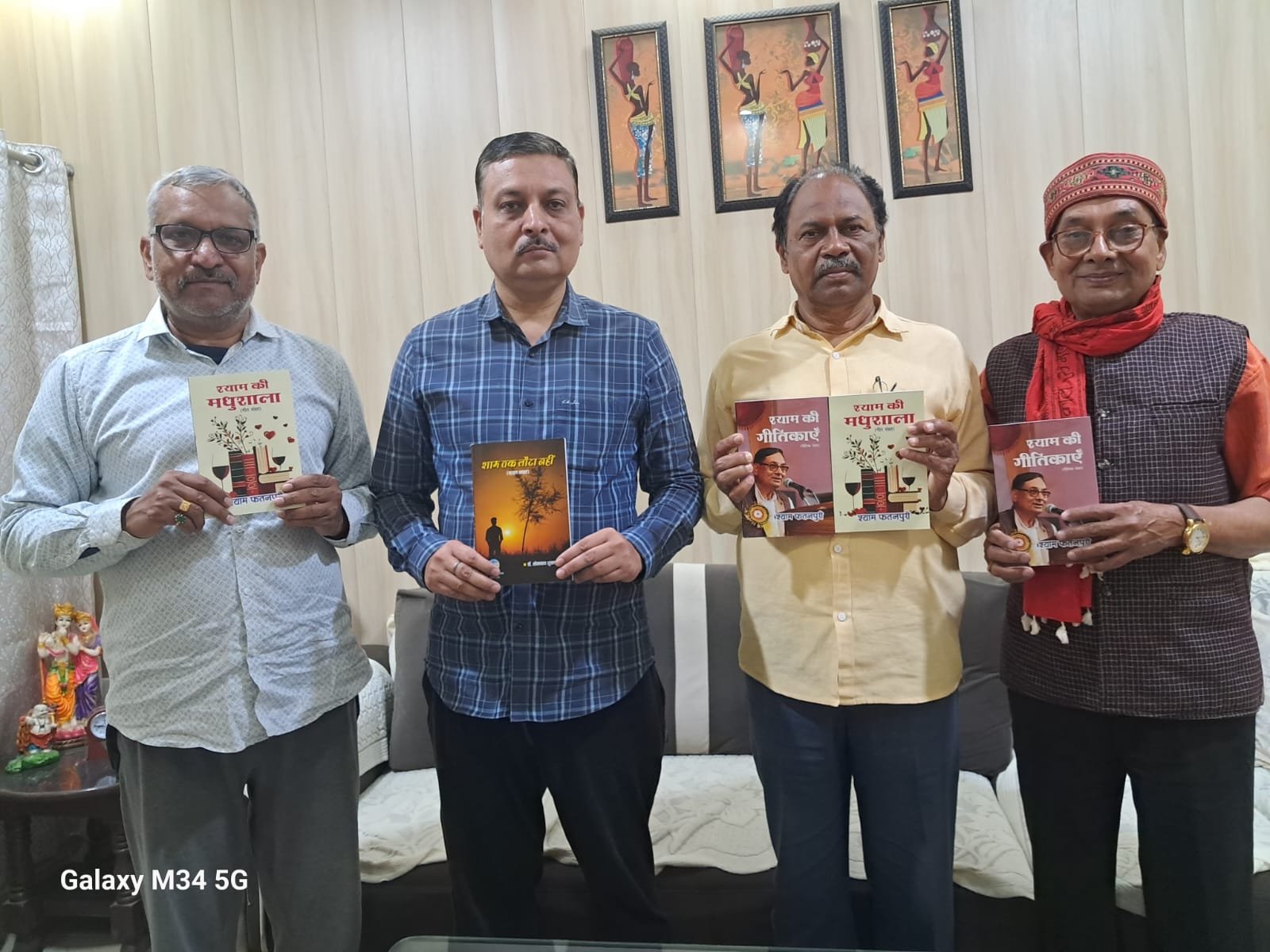 जबलपुर - कवि संगम त्रिपाठी संस्थापक प्रेरणा हिंदी प्रचारिणी सभा जबलपुर मध्यप्रदेश ने अपने प्रयागराज प्रवास के दौरान श्याम फतनपुरी की कृतियां श्याम की गीतिकाएं व श्याम की मधुशाला एवं डॉ सोमनाथ शुक्ल प्रयागराज की गजल संग्रह शाम तक लौटा नहीं का लोकार्पण किया। इस अवसर पर श्याम फतनपुरी, डॉ सोमनाथ शुक्ल, विजय कुमार शुक्ल उपस्थित रहे।