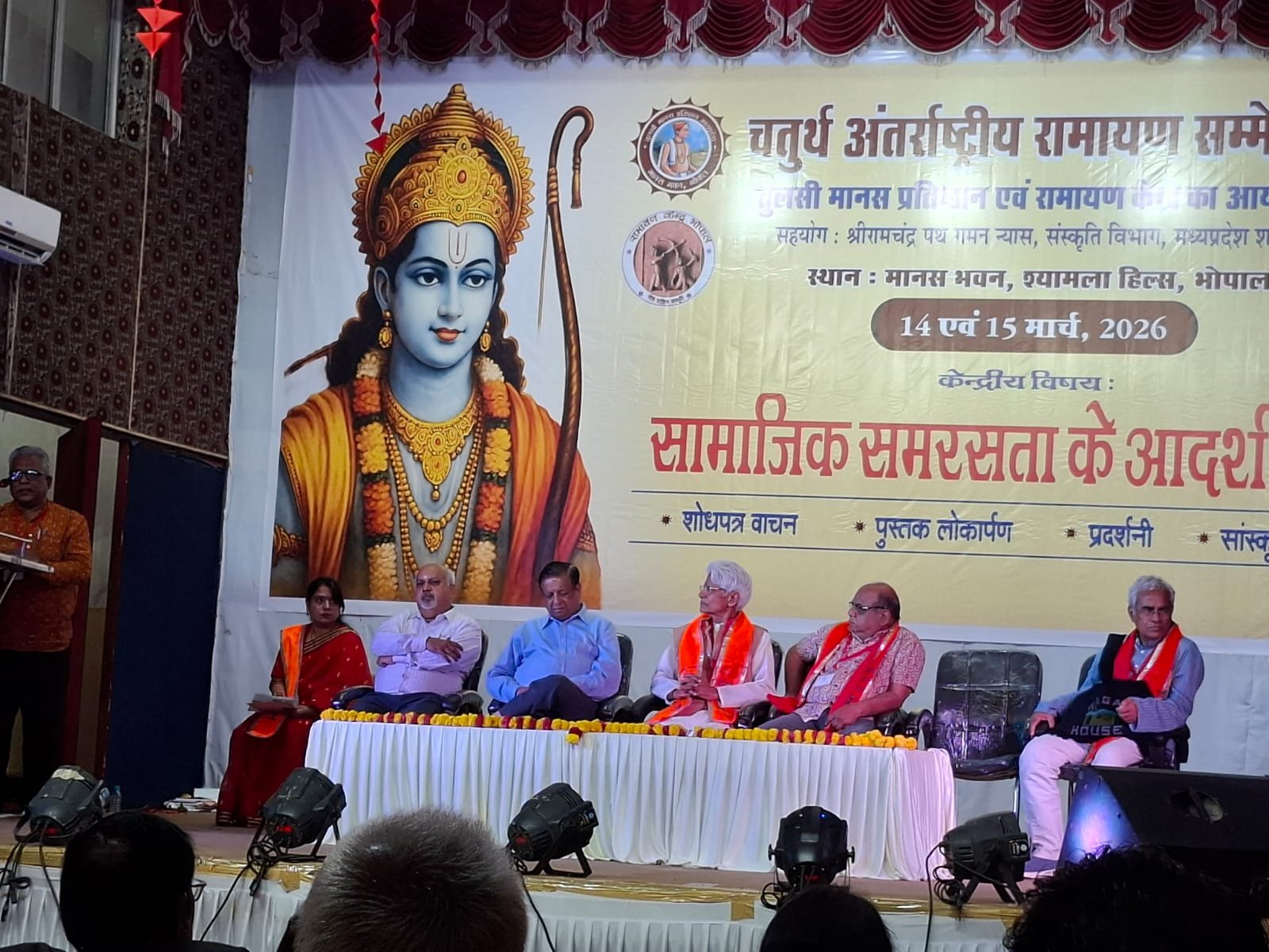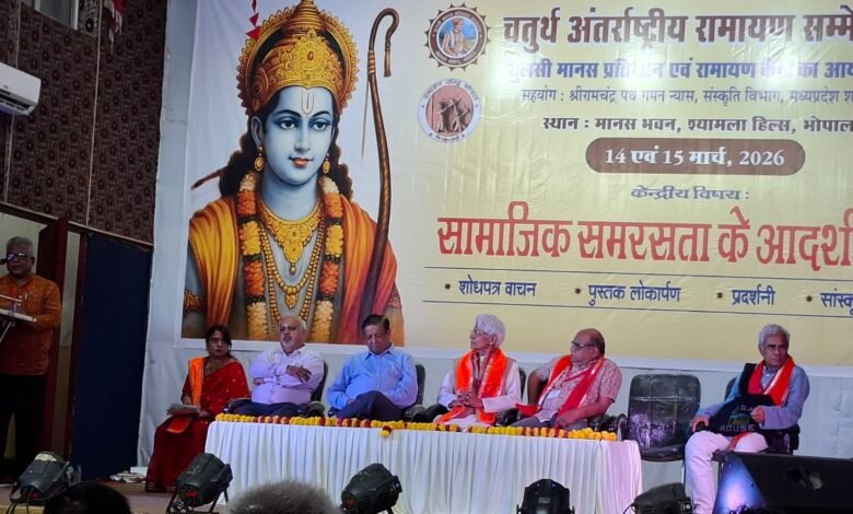 भोपाल/जबलपुर, तुलसी मानस प्रतिष्ठान भोपाल, रामायण केंद्र भोपाल,श्रीरामचंद्र पथ गमन, संस्कृति विभाग, मध्य प्रदेश शासन के संयुक्त तत्वाधान में दिनांक 13 मार्च एवं 14 मार्च 2026 को मानस भवन, भोपाल में आयोजित किए जा रहे दो दिवसीय चतुर्थ अंतरराष्ट्रीय रामायण कॉन्फ्रेंस में रामायण केंद्र जबलपुर इकाई के संयोजक इंजी . संतोष कुमार मिश्र ‘ असाधु’ ने भगवान शिव द्वारा ‘ श्रीरामचरितमानस ग्रंथ के नामकरण ‘ विषय पर एक अत्यंत रोचक शोध पत्र प्रस्तुत किया गया । इस कॉन्फ्रेंस में देश-विदेश से लगभग 60 शोध पत्र प्राप्त हुए हैं। अपने संबोधन में रामायण केंद्र जबलपुर इकाई के संयोजक एवं प्रसिद्ध धार्मिक चिंतक इंजी. संतोष कुमार मिश्र ‘असाधु ‘ जो कि वर्तमान में मध्य प्रदेश पॉवर मैनेजमेंट कंपनी लिमिटेड जबलपुर में अधीक्षण अभियंता के पद पर कार्यरत हैं,के द्वारा बताया गया कि रामचरित मानस कोई सामान्य किस्सा-कहानी वाला ग्रंथ कदापि नहीं है बल्कि यह एक अत्यंत गूढ़ ब्रह्म विद्या विज्ञान है। उन्होंने बताया कि ईश्वर के द्वारा सृष्टि निर्माण से लेकर सृष्टि के विनाश के मूल में केवल और केवल मन तत्व ही होता है। हमारा मन दुनियां के उस दरवाजे की तरह होता है जिसके एक ओर से प्रवेश करने पर यह जीव या तो दुनियां के भिन्न-भिन्न मायावी झंझावातों में फंस जाता है वहीं दूसरी ओर मन द्वार से बाहर से निकल कर वह दुनियांदारी के चक्र से सदा-सदा के लिए मुक्त हो जाता है। श्री मिश्र ने अपने इस शोध पत्र में रामचरितमानस के प्रत्येक कांड में भिन्न-भिन्न पात्रों के माध्यम से मन तत्व की व्याख्या की गई। इसके अतिरिक्त रामचरित मानस के नामकरण के सम्बन्ध में और भी कई गूढ़ विषयों का रहस्योद्घाटन किया गया। श्री मिश्र के इस अनूठे शोध पत्र की भूरि-भूरि प्रशंसा करते हुए उन्हें आयोजकों द्वारा भी सम्मानित किया गया है।