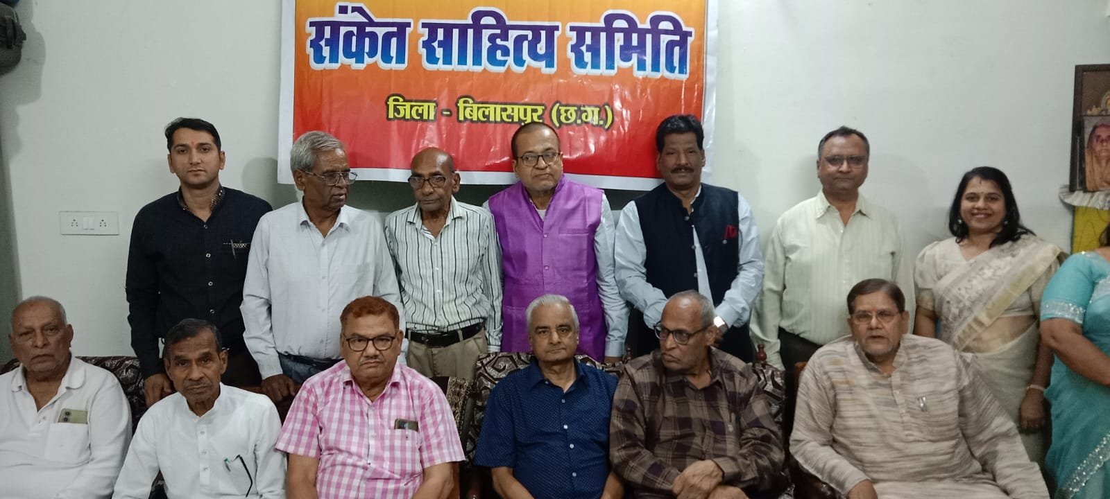 संकेत साहित्य समिति ,बिलासपुर इकाई द्वारा मार्च माह में जन्मे साहित्यकारों का जन्मोत्सव एवं काव्य गोष्ठी का आयोजन समिति के अध्यक्ष राकेश खरे ‘ राकेश’ के आवास , राजकिशोर नगर में किया गया ।कार्यक्रम की अध्यक्षता डा.जी. डी. पटेल ‘ पुष्कर’ ने की। “मुख्य आतिथि रहे हैदराबाद से पधारे एवं सत्य प्रसन्न तथा विशिष्ट अतिथि रहे अमृत पाठक तथा विजय राठौर ।कार्यक्रम की शुरुआत अतिथियों द्वारा सरस्वती पूजा- अर्चना व सरस्वती वंदना के साथ संपन्न हुई ।कार्यक्रम के प्रथम चरण में अतिथियों का स्वागत सत्कार के पश्चात अतिथियों के कर कमलों से श्रीमती अनुसुइया श्रीवास -कोरबा , विजय राठौर- जांजगीर , विनय कुमार पाठक- बिलासपुर एवं श्रीमती रश्मि अग्रवाल- बिलासपुर का सम्मान प्रतीक चिन्ह,शाल पुष्प गुच्छ एवं जन्मोत्सव सम्मान पत्र से किया गया ।अध्यक्ष राकेश खरे द्वारा संकेत साहित्य समिति के प्रयास व साहित्यकारों के जन्मोत्सव पर प्रकाश डालते हुए समाज को सुसंस्कृति, चेतना स्पंदन एवं नव गति देने में साहित्यकारों की लेखनी की भूरी-भरी प्रशंसा की गई।कार्यक्रम के प्रथम चरण का संचालन राकेश खरे “राकेश” द्वारा एवं द्वितीय चरण का सफल संचालन नरेंद्र कुमार शुक्ल ‘अविचल “द्वारा किया गया ।