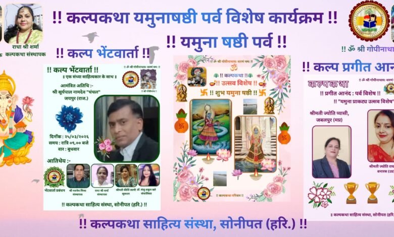 डॉ श्रीमती जया शर्मा प्रियंवदा के संयोजन में पुण्य सलिला कृष्ण प्रिया कालिंदी के अवतरण उत्सव विशेष कल्प प्रगीत आनंद कार्यक्रम में जबलपुर मप्र से ज्योति प्यासी एवं वाराणसी उप्र से ज्योति राघव सिंह ने पौराणिक संदर्भों सामाजिक महत्त्व को रेखांकित किया।