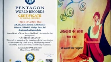 डॉ पल्लवी सिंह ‘अनुमेहा’ के काव्य संग्रह उच्छवास की सांस को मिला पेंटागन विश्व रिकॉर्ड सम्मान