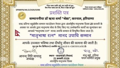 शिक्षिका/कवयित्री रीना पटले अंतर्राष्ट्रीय “मातृभाषा रत्न मानद उपाधि सम्मान” से हुई सम्मानित