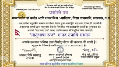 मातृभाषा रत्न -2026 की मानद उपाधि के अंतर्राष्ट्रीय सम्मान से सम्मानित हुए डॉ कर्नल आदि शंकर मिश्र ‘आदित्य’
